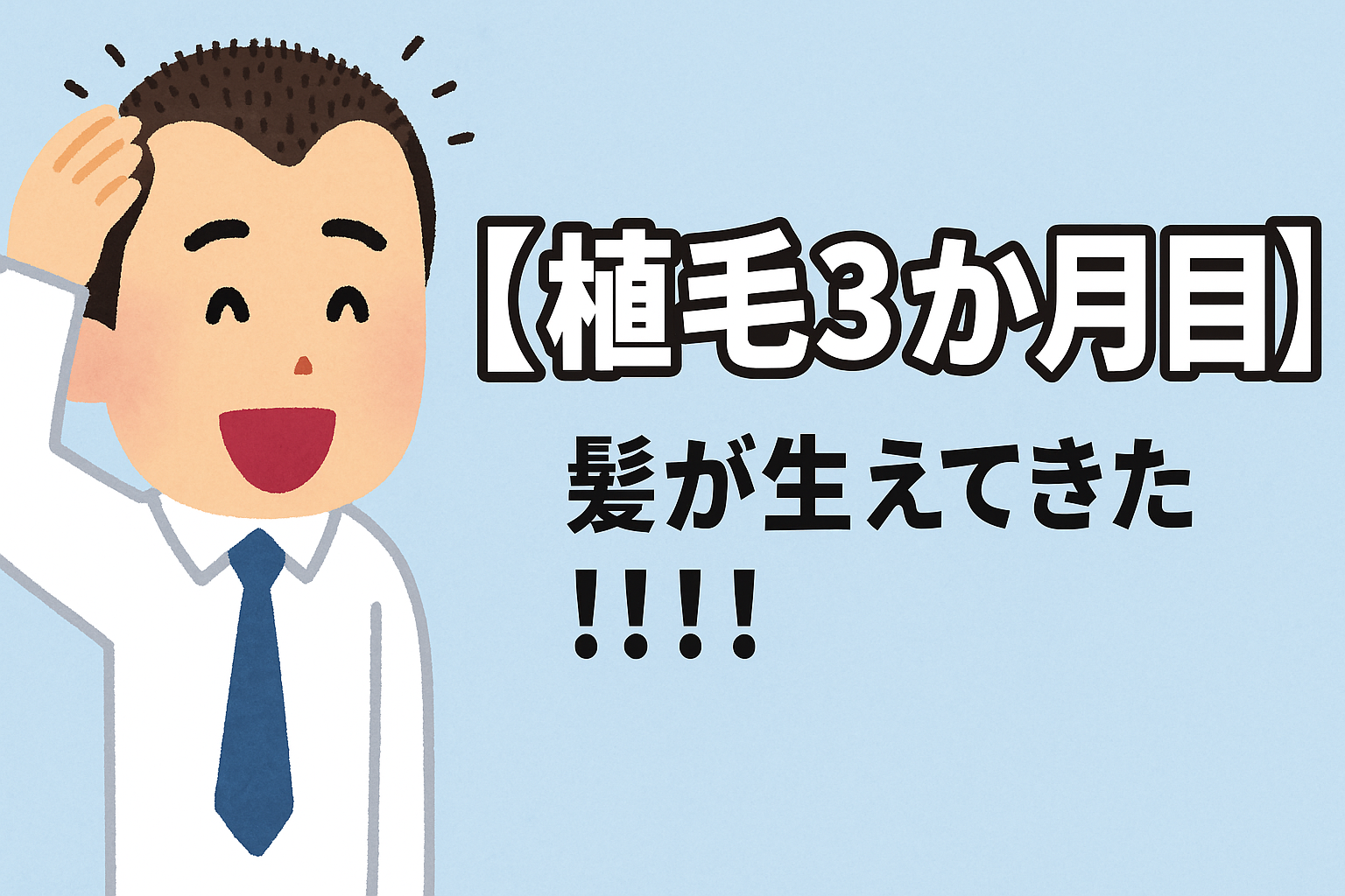 植毛から3か月。ショックロスを経て、ついに産毛が生え始める時期。実際の経過と見た目の変化をリアルに紹介。