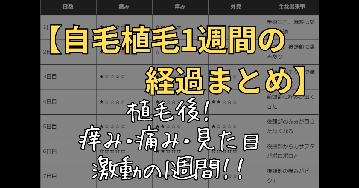 【自毛植毛1週間の経過まとめ】初日~7日目の痛み・痒み・見た目の変化を完全公開